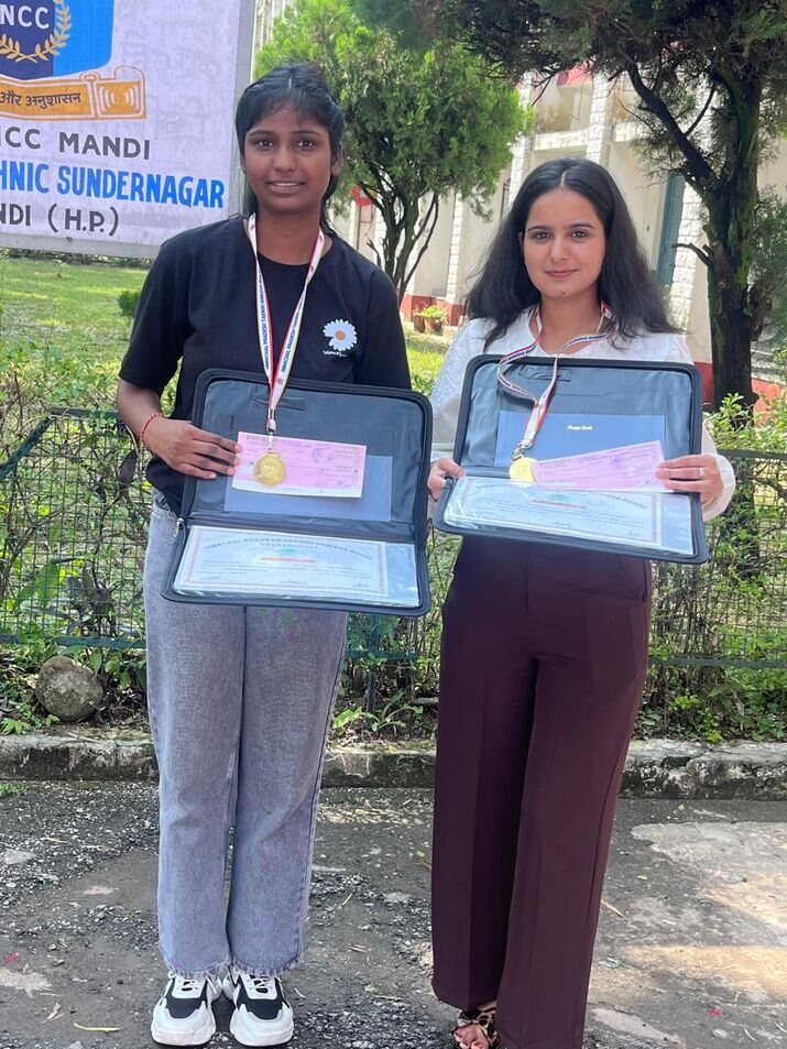Kajal from Computer Engineering and Prem Lata from Architectural Asstt. Received Gold medal and Cash price of Rs. 50000 from HP Takniki Shiksha Board, Dari, Dharamshala